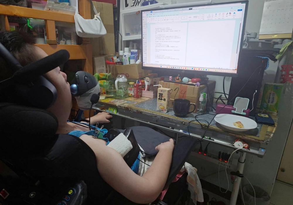 直到透過新店就業服務站與職業重建中心轉介,她接觸到新生命資訊公司。公司在面試時即評估她的需求與專長,為她設計合適的工作內容與遠距制度,讓她能在居家環境中發揮所長。瀅芝也自行購製軌跡球滑鼠、語音輸入輔助及雲端協作工具,讓她能以腳靈活操作、完成所有工作任務。