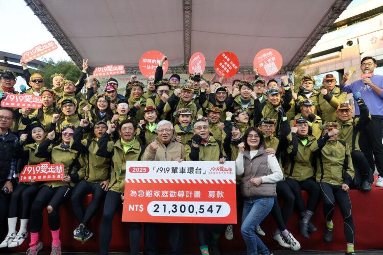 其中,由55位環台募款勇士組成的「1919單車環台車隊」,以及滿載愛心物資的「1919幸福巴士」,於去年12月20日自台北馬場町紀念公園啟程,歷經15天、環繞全台。自去年7月起,單車環台活動共募得新台幣2,130萬元,幸福巴士則深入各地,服務687位弱勢長輩,將關懷送到最需要的角落。