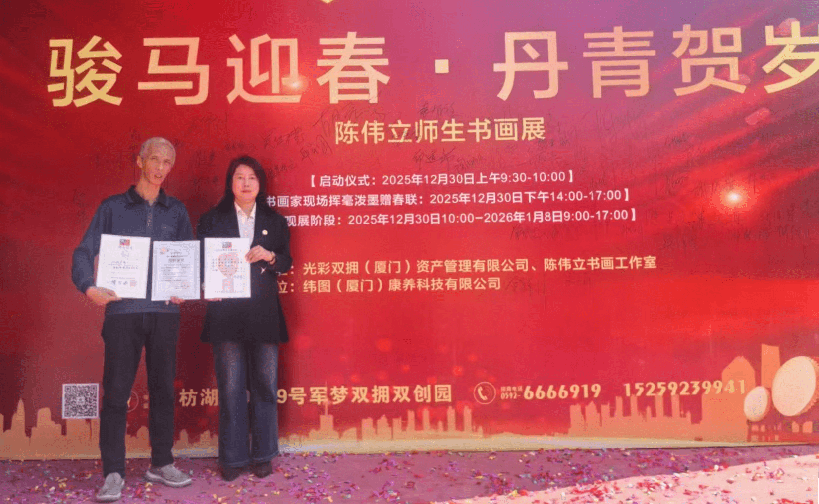 活動當天下午揭開序幕,同期正在園區舉辦的《駿馬迎春 丹青賀歲》陳偉立師生書畫展為現場增添濃厚人文氣息。隨後進行的摜蛋友誼賽與旗袍表演,結合競技與美感,現場氣氛熱絡溫馨,歡笑聲此起彼伏。