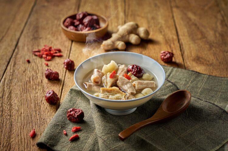 傳統進補路線同樣不缺席。「傳統炭燒羊肉爐」選用帶皮帶骨羊肉長時間低溫燉煮,湯色濃郁卻不顯油膩,適合寒冬暖身;「四神湯」則以山藥、茯苓、芡實、蓮子與薏仁為基底,搭配細心處理的豬腸與豬肚,歷經數小時熬煮,口感溫潤順口,展現經典台式滋補精神。