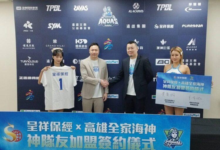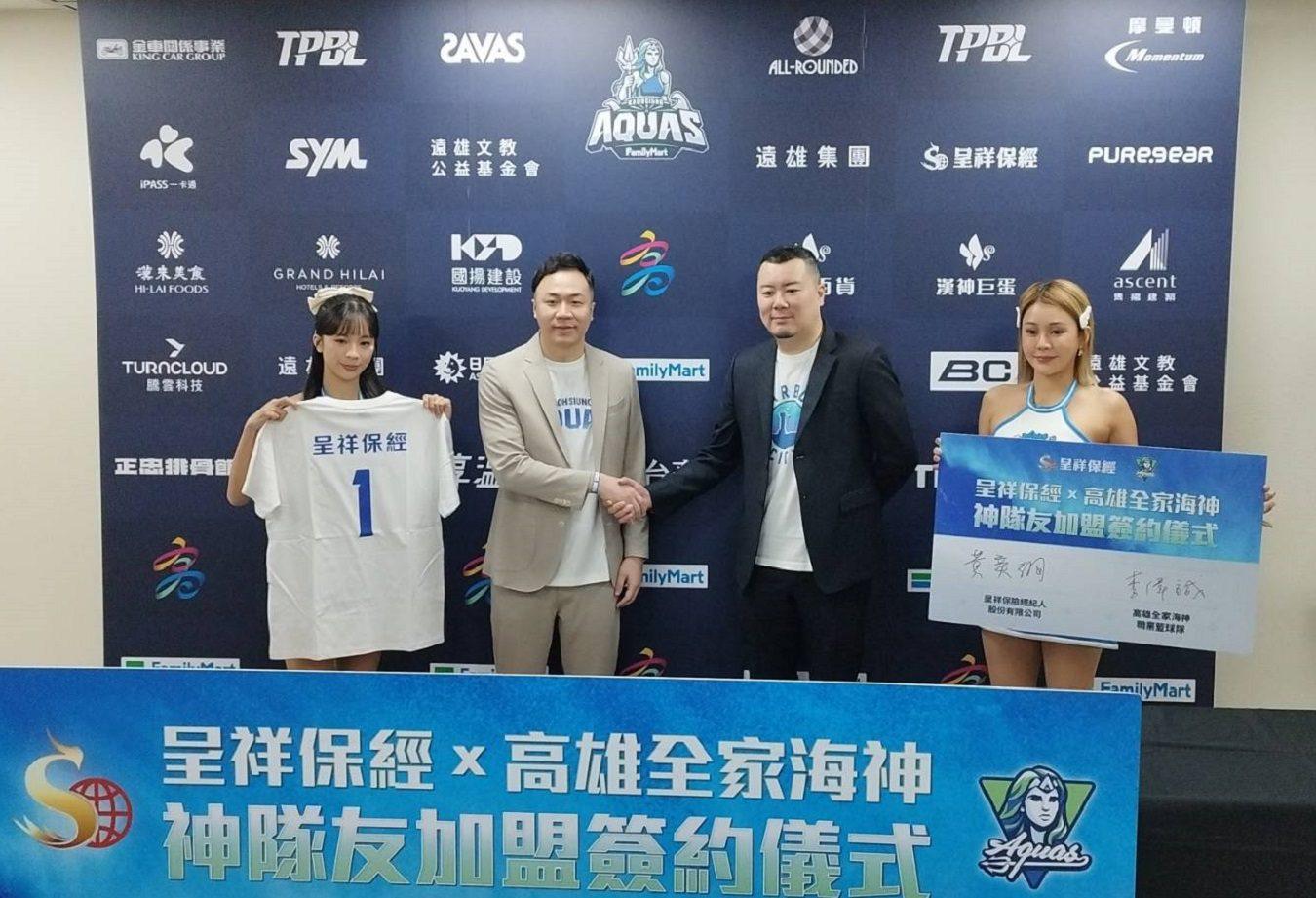在「神隊友加盟簽約記者會」上,高雄全家海神執行長李偉誠親手把印有「1號」背號的專屬短Tee,交到呈祥保經董事長黃奕綱手中,象徵呈祥保經成為團隊的重要戰力。李偉誠指出,海神隊立足港都、推廣籃球文化,需要在地企業長期相挺,而呈祥保經從高雄出發、布局全台,雙方理念契合,合作不僅止於商業層面,更是在地情感與城市認同的延伸。