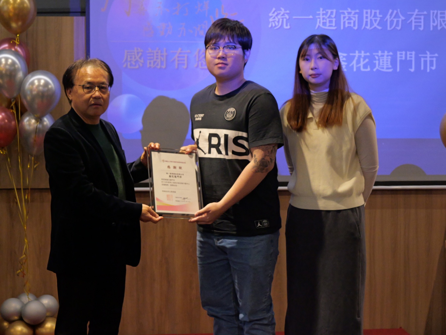 ▲門諾基金會董事長周朝國(左)頒發感謝狀,感謝7-ELEVEN「好鄰居送餐隊」鑫花蓮門市志工。