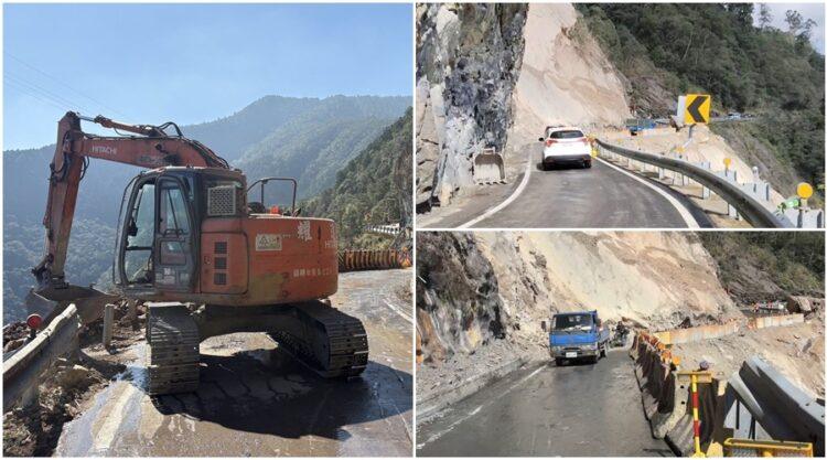 北橫公路台7線68.7k明池路段,1月13日上午發生大規模坍方阻斷交通,經東區養護工程分局獨立山工務段搶修團隊的人員機具全力搶修後,終於在14日中午搶通,但因邊坡仍不穩定,易有落石發生,現場採人員警戒管制通行;另因高山道路易起濃霧難以掌握狀況,而且邊坡仍不穩定,不排除實施預警性道路封閉,請用路人配合現場人員的指揮通行。