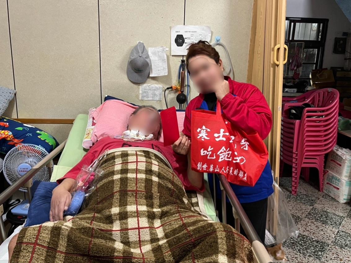 對遭逢變故的家庭而言,過年從不是團圓與期待,而是必須咬牙撐過的關卡。以花蓮豐濱60歲的阿忠為例,他在105 年間突發中風後臥床氣切,依賴鼻胃管維生,新住民的太太在加油站工作,收入有限,上有年邁的母親,下有兩名就學中的孩子。經濟與照護壓力,讓這個家庭瀕臨崩潰。創世基金會推出的「送禮到家」活動,在農曆年前送上的不只是一份年禮與紅包,更是一分讓弱勢家庭感受到「被記得」的溫暖。