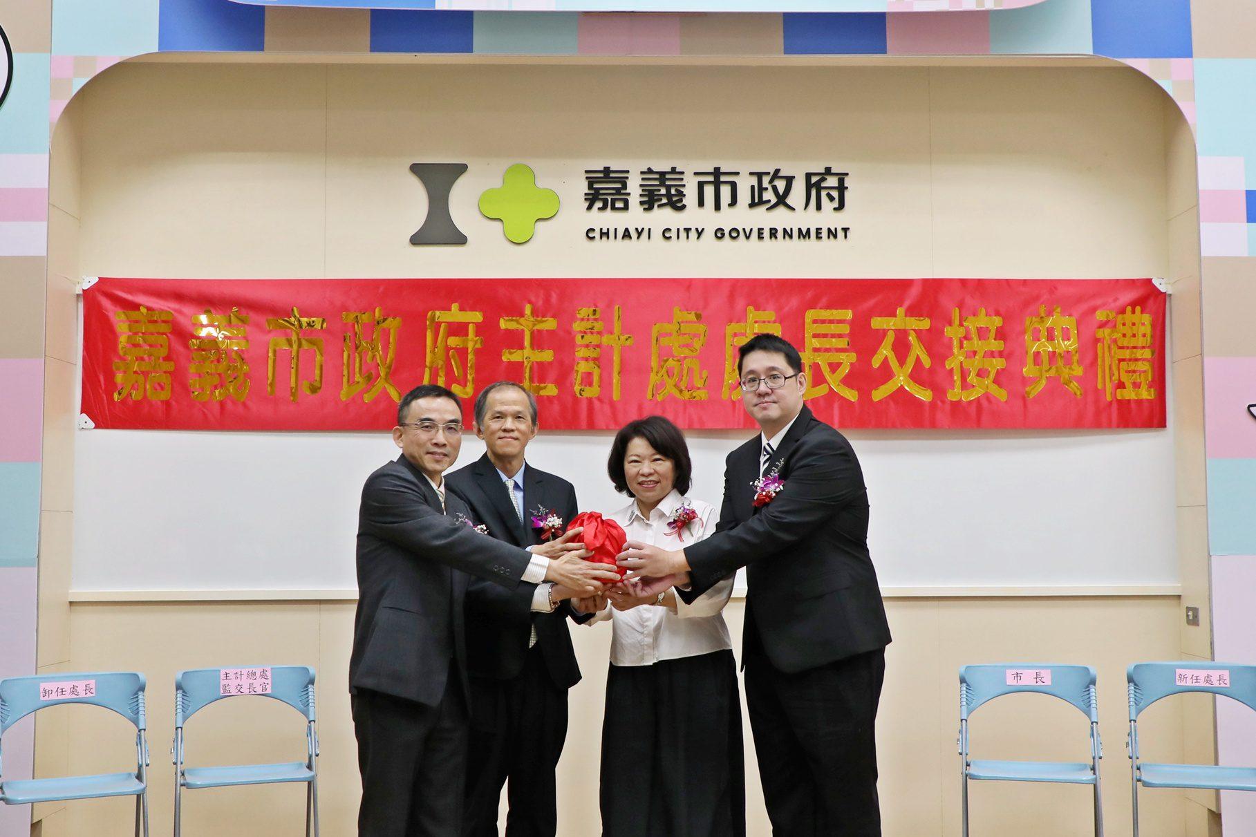 嘉義市政府今(16)日舉行新、卸任主計處處長交接典禮,由市長黃敏惠主持,行政院主計總處基金預算處處長潘清鴻監交,將印信由卸任處長阮鼎元手中,交給新任處長陳忠誠。黃敏惠感謝阮鼎元於工作崗位的辛勤付出,也歡迎陳忠誠加入嘉義市政府大家庭,期盼能攜手推動市政創新,為嘉義市的未來共同努力。