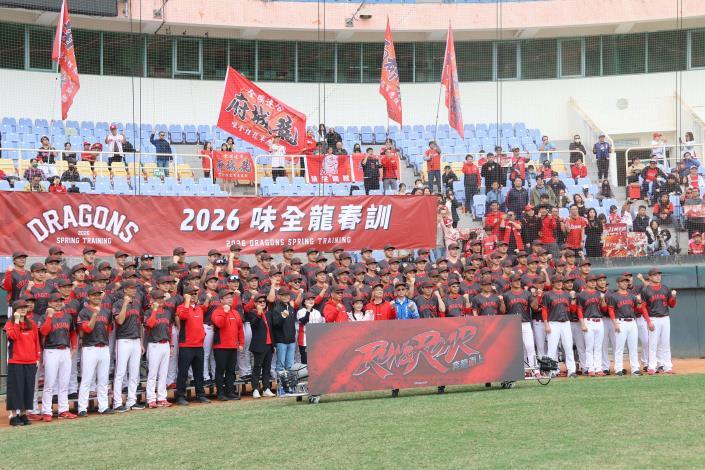 職棒味全龍春訓開訓典禮18日上午在雲林縣斗六棒球場登場,雲林縣長張麗善偕同立委張嘉郡到場勉勵球員,張麗善表示,很榮幸味全龍選擇斗六棒球場做為訓練基地,她代表縣民表達歡迎之意,也祝福味全龍新球季訓練順利、戰績長紅。