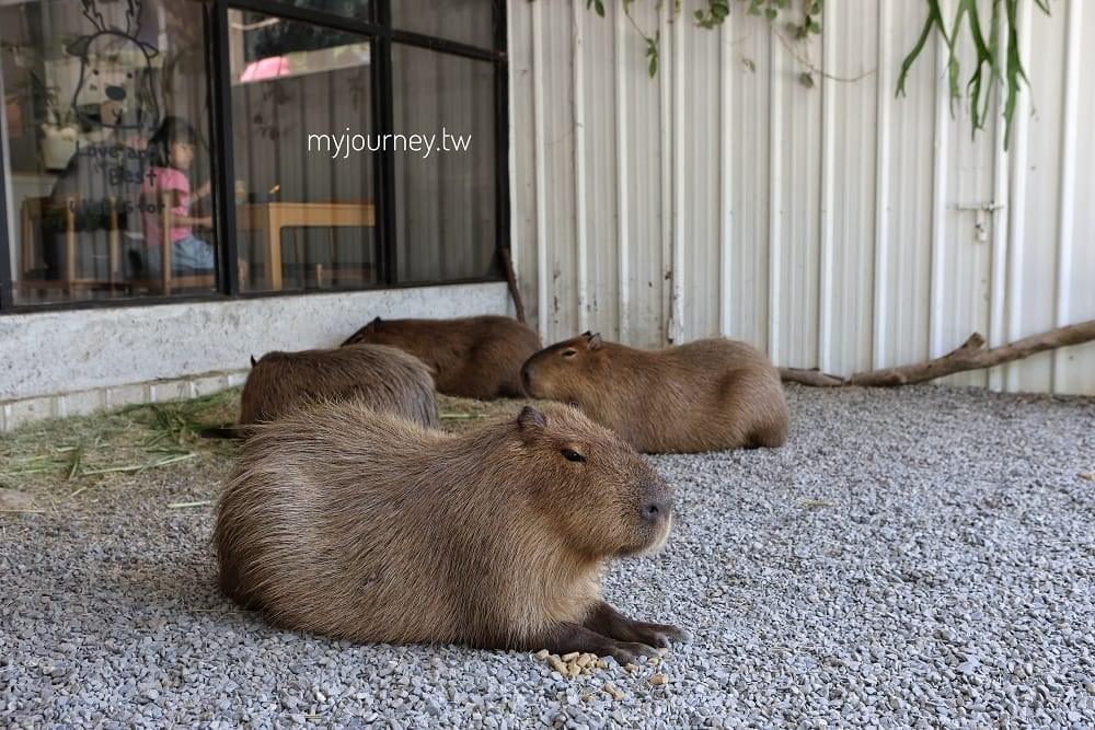 穿過玻璃門來到戶外,水豚君正懶洋洋地趴在地上,這裡的水豚非常有親和力,孩子們可以近距離互動。看著這群呆萌的水豚瞇著眼,甚至優雅地滑進水池裡泡澡,身旁還有幾隻柯爾鴨當配角,那種和樂融融的畫面,連大人看了都會忍不住露出「姨母笑」,壓力瞬間全消。