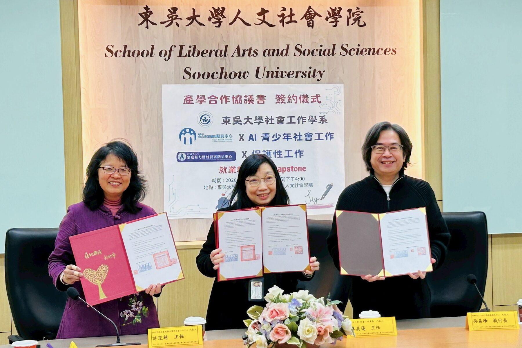 新北市積極培育社工人才,讓社工新血在踏入職場前,就能理解現場、站穩腳步。新北市政府家防中心與東吳大學社會工作學系於本月正式簽署合作協議,啟動全國首創的「社工人才產學合作:就業轉銜職前 Capstone 課程」,以產官學合作模式,為保護性工作打造更完整的職前銜接機制。