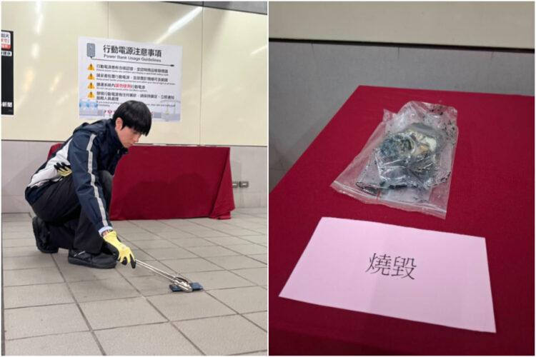 根據消防專業指導,鋰電池一旦發生熱失控,可將起火的行動電源完全浸泡於裝冷水水桶,快速降溫阻止復燃。北捷亦於全線車站配置鐵桶、夾子、耐熱手套及瓶裝水,一旦有行動電源自燃、冒煙事件,即依消防單位建議進行緊急處置,並立刻通報110、119。