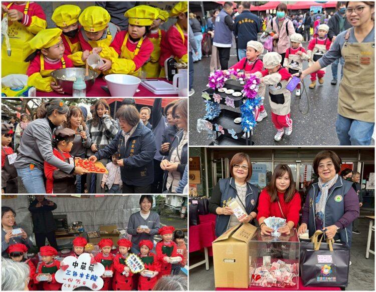 義賣活動中,幼兒們扮成小小廚師,製作「鎮長媽媽的甜米糕」、「三色米卡龍」、「奶油烤年糕」、「紅運蘿蔔糕」、「香貢貢ㄟ~油飯、魚丸湯+自己種的香菜」、「甜心米餅」、「Q彈砵仔糕」及「好運來『蘿』!」等創意料理,經由「從土地到餐桌,再將愛心送出去」的學習歷程,在心中種下關懷社會、樂於付出的種子。