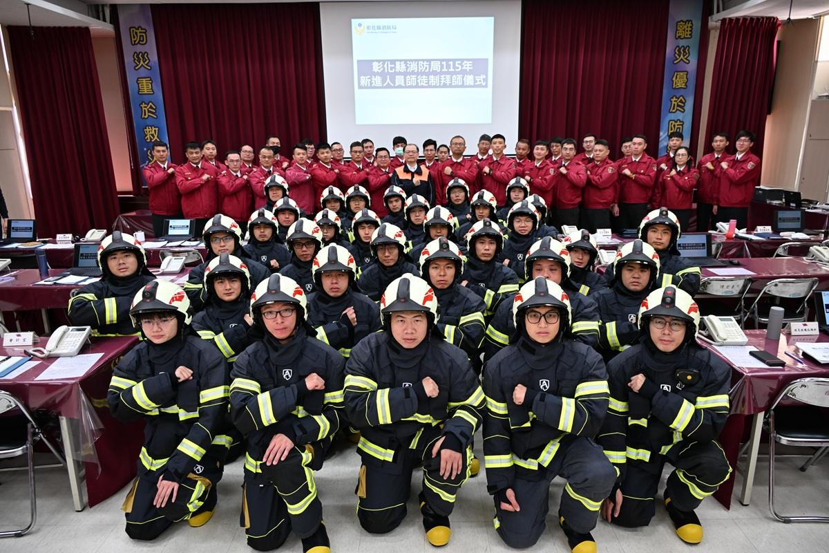 彰化縣消防局為落實消防專業經驗傳承與新進人員培育,日前在消防局4樓禮堂舉辦「115年新進人員師徒制拜師儀式」,由局長施順仁親自主持,共計32名新進消防人員及32名輔導員參與,象徵消防專業世代銜接,展現消防團隊重視經驗傳承與人力培育的重要意義。