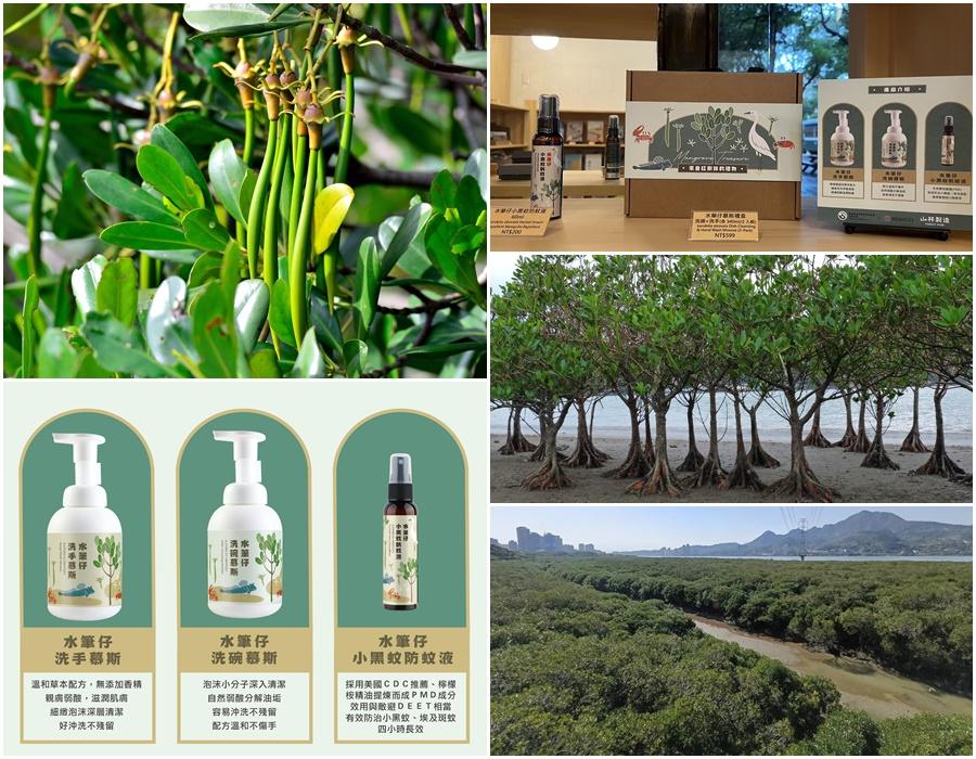 「山林製造」水筆仔產品即日起於台北紅樹林自然保留區之紅樹林生態教育館上架販售,歡迎民眾前往參觀選購;宜蘭分署所轄各育樂場域販賣部亦同步上架,包括太平山國家森林遊樂區及羅東林業文化園區,讓民眾在親近山林與自然的同時,也能以實際行動支持循環經濟與綠色產業發展。