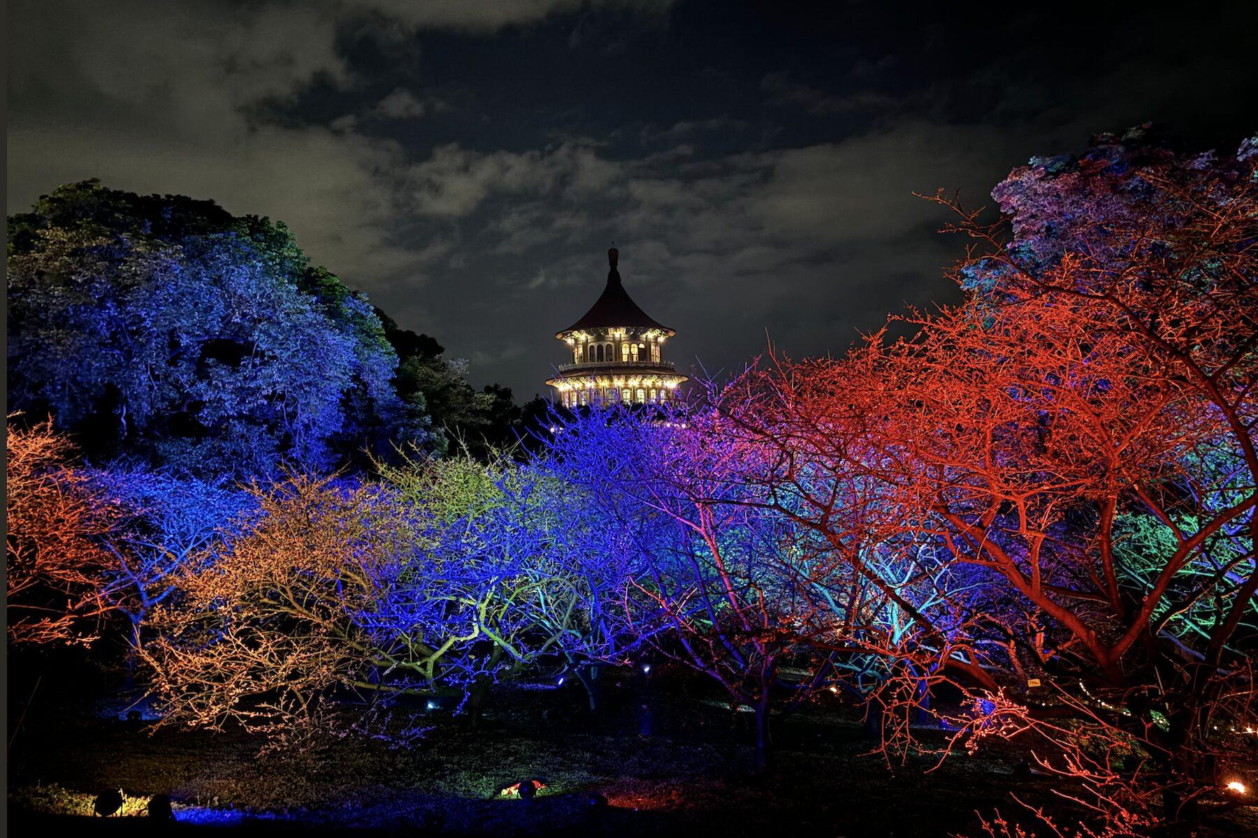 ▲2026花見櫻花季(29)日晚間於新北淡水無極天元宮由新北市副市長劉和然到場進行開幕點燈。(圖/新北市景觀處 提供)