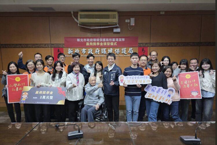 新北市環保局於(28)日舉辦「新北市政府環境保護局所屬清潔隊晨飛獎學金及急難救助金」捐款暨頒獎儀式,感謝善心人士陳輝先生及陳念平先生慷慨捐助,以實際行動長期關懷基層清潔隊員及其家庭,展現社會溫暖與善的循環。