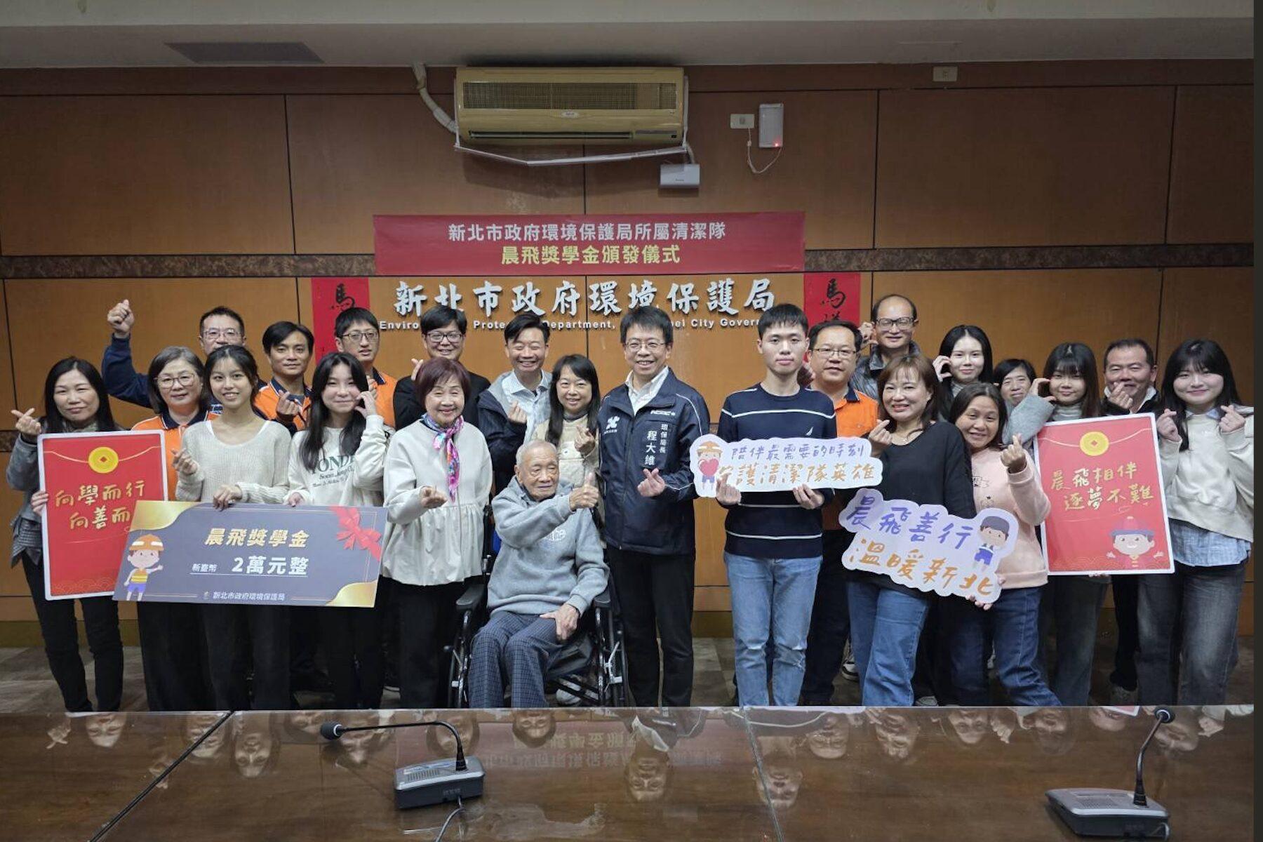 守護城市英雄!陳輝、陳念平父子捐百萬 新北「晨飛獎學金」溫暖清潔隊家庭