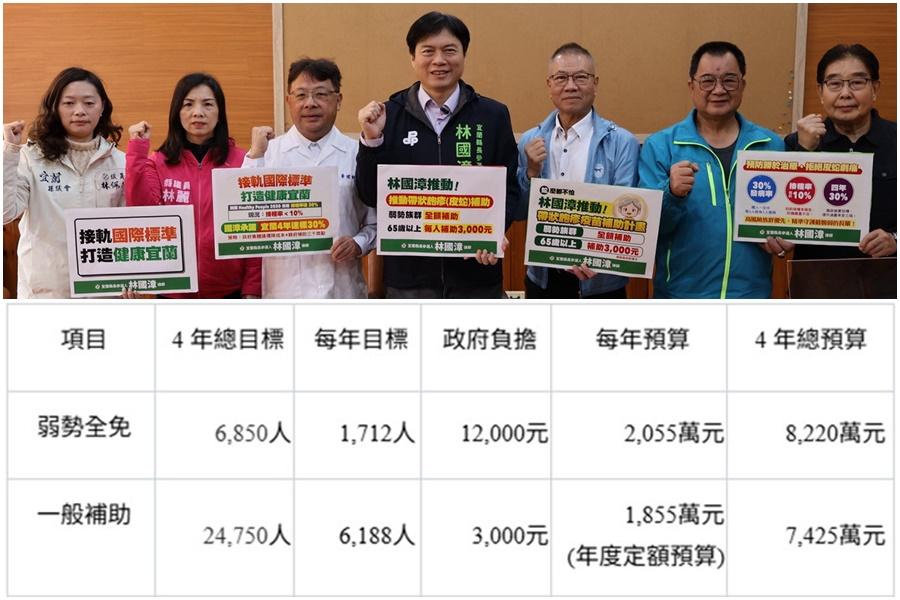 林國漳表示,帶狀性皰疹就是俗稱的皮蛇,一些得過的人都講非常非常的痛,甚至會有很多的併發症,必須事先預防,政府也一直在鼓勵疫苗的注射,不過因為目前的疫苗注射金額很高,很多人沒有辦法去注射,所以提出一些補助措施,包含兩個部分:第一個部分是中低收入戶及55歲原住民全額補助;第二個部分是一般65歲以上高齡者,若有需要會補助3000元。