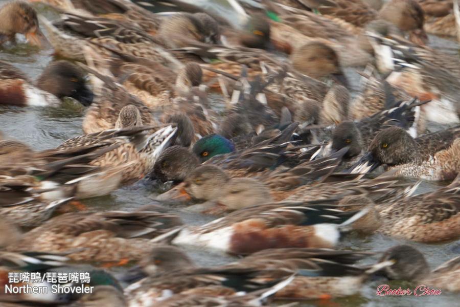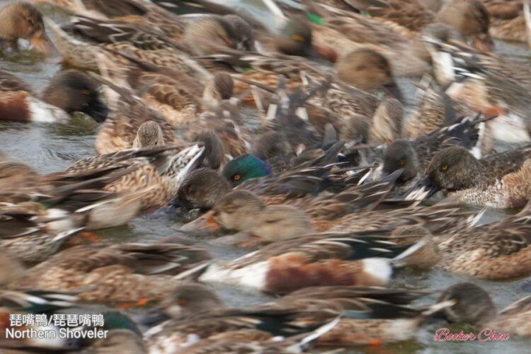 琵嘴鴨在嘉南地區屬於普遍冬候鳥,每年十月到次年四月停留期間,鰲鼓溼地都有機會看見牠們集體上演水上圓舞曲的畫面。(本文作者:資深媒體工作者、宜蘭左岸彩鷸俱樂部專業鳥導及宜蘭左岸藝廊藝術總監周俊雄博士)