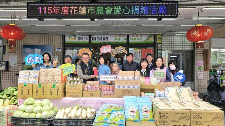 花蓮市農會捐贈新臺幣6萬3000元,並提供1,000餘公斤白米、雞蛋、麵條、蔬菜,以及蜂蜜、酥條等農產加工品,希望老人暨家庭關懷協會弱勢家庭與獨居長者平安過好年。