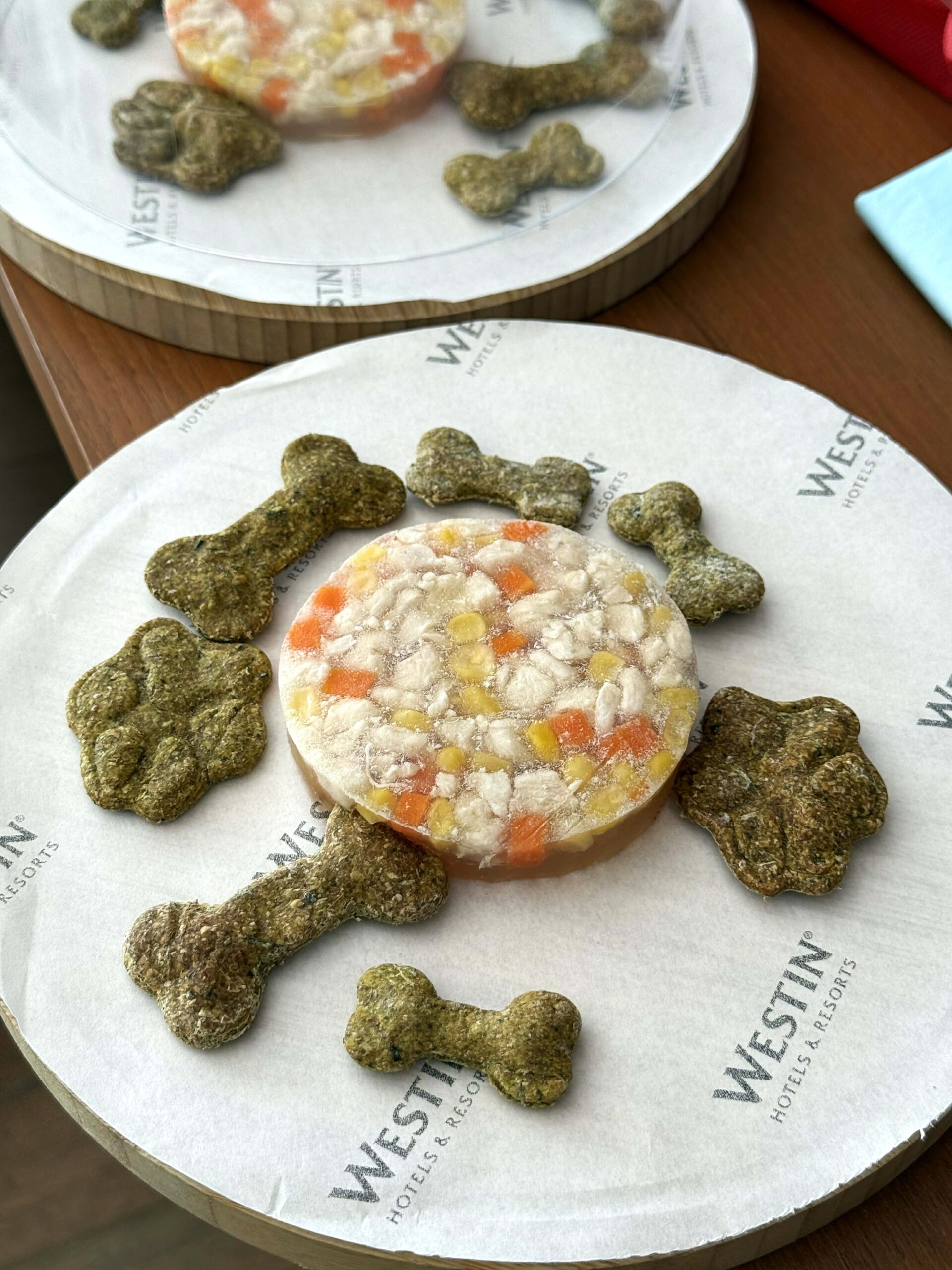 ▲「毛孩專屬客房餐飲」, 以胡蘿蔔蔬果與肉凍飼料適口性打造專屬料理。(圖/大溪笠復威斯汀提供)