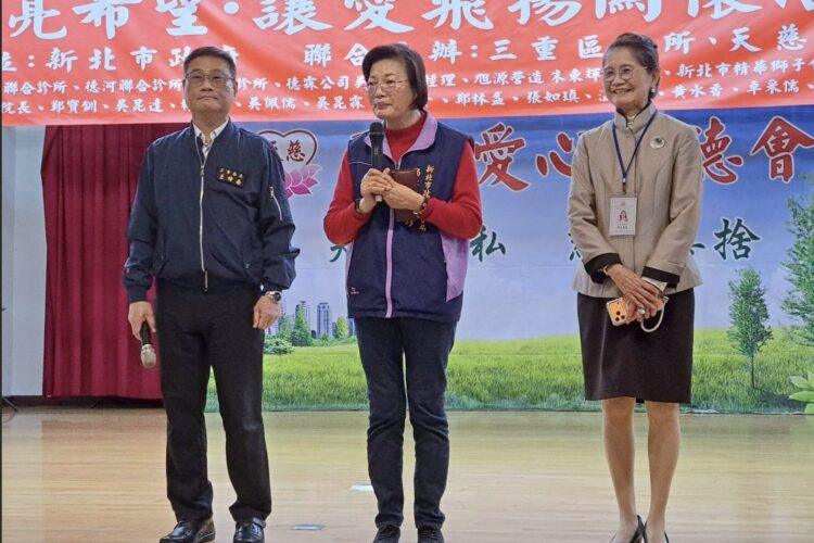 社團法人中華民國天慈愛心功德會7日於三重區綜合體育館舉辦「點亮希望 讓愛飛揚」愛心關懷公益活動,先前已發放板橋95戶、樹林162戶等共計257戶弱勢家庭,此次再發放三重976戶弱勢家庭,每戶3,000元關懷金,三場次共計369萬9,000元及愛心物資。現場亦有音樂表演,社會局長李美珍、三重區長王坤南、李余典議員、彭佳芸議員也到場致意,場面溫馨。
