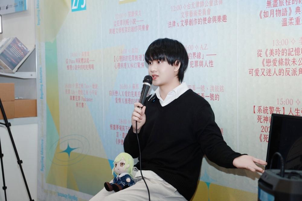 ▲新銳作家渚央以獨特的「厭世幽默」逗樂全場。自述剛結束自學生活、進入日文系就讀大一的他,直言2025年是「悲慘的一年」。(圖/千魚娛樂提供)