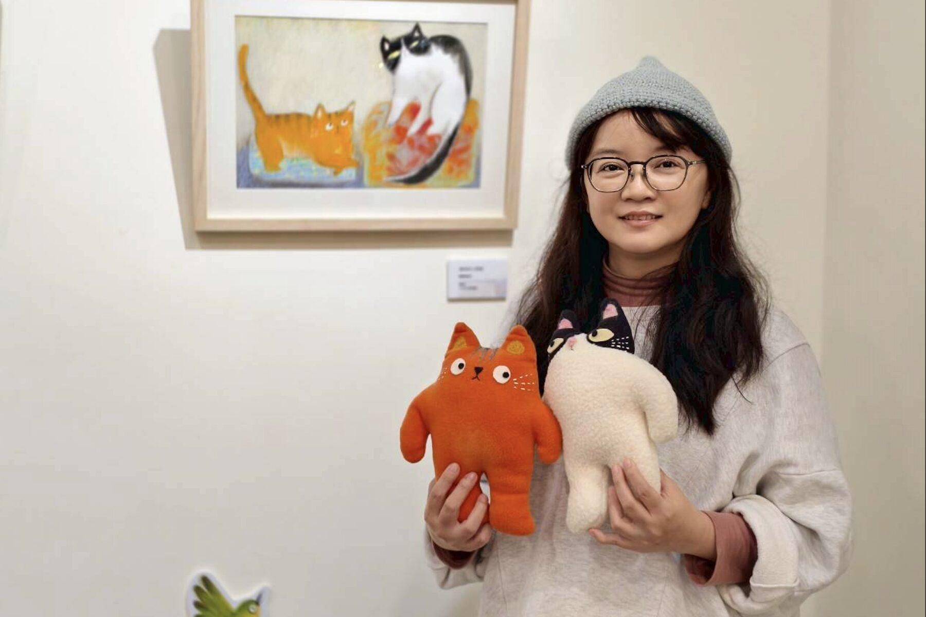 ▲繪本作家葉曼玲與《誰要來喝下午茶?》作品合影。(圖/新北市文化局 提供)