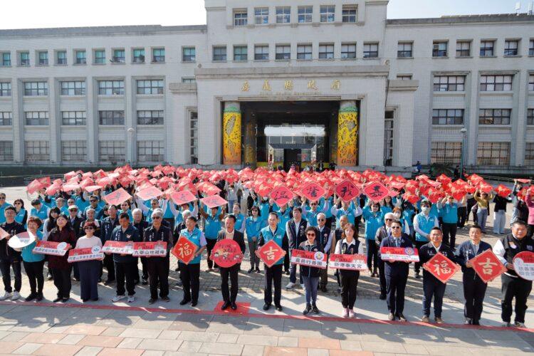 志工一早就將年菜逐一上車,開到府前廣場整齊併排,綿延的車隊在翁章梁等人揮手目送下,出發執行愛心任務,盼讓家戶在農曆春節前感受到社會滿滿的祝福與關懷,翁章梁隨後也前往水上親送年菜、貼春聯道賀新年愉快。