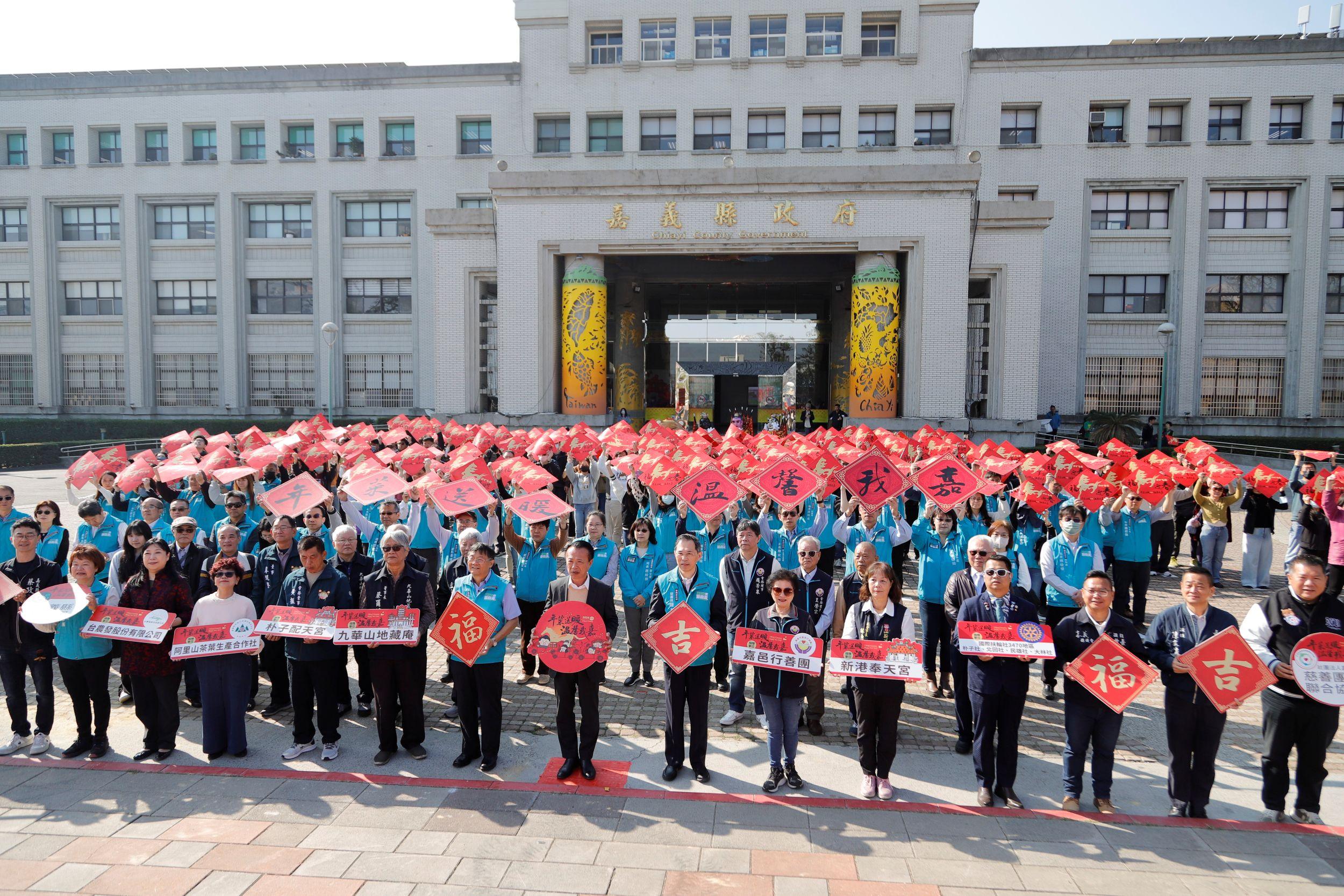 邁入第14年的嘉義縣「年菜送暖,溫馨我嘉」活動,11日在縣府前廣場舉行出發儀式,縣長翁章梁率487位縣府員工擔任志工,出動超過231台車輛,將愛心年菜、年節紅包親送至1,500戶弱勢家戶。