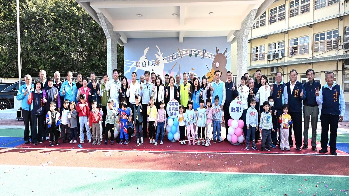 全國首創停車場與蓄洪池共構 鹿港洛津國小操場設地下停車場兼蓄洪池盛大啟用