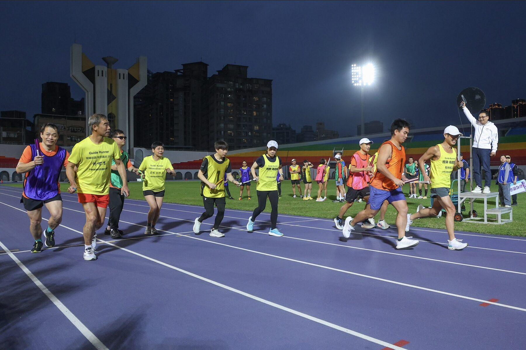 體育局補充,「彩虹接力跑」,由視障選手與新北在地跑團共同組隊,其中視障跑者李協興跑齡超過6年,曾參加過極限鐵人賽,也跑過萬金石馬拉松;林育良的雙眼先天性白內障,術後兩眼視力1000度,400度閃光,跑齡5年,曾參加台北馬拉松、台東活水活鐵人三項,從全馬、超馬到鐵人三項,無役不與;黃浩宇,跑齡超過1年,是視障跑者也是服務者,身為視障陪跑員培訓講師,教導明眼志工如何安全、有效地引導視障跑者;劉豐銘,有遺傳性氣喘,對於跑步從來不曾想像,2019年看到視障跑團網頁,開啟路跑人生,跑齡7年多;簡銘俊,跑齡30年,參加過紐約馬拉松,以其自身經驗,號召更多視障朋友,創立中華視障路跑協會。這場接力賽象徵著運動平權的薪火相傳,從萬金石馬拉松到全國身心障礙國民運動會,邀請全民投入各類運動賽事,以實際行動擁抱平權,一同為選手加油喝采。更多相關資訊請持續關注【新北運動聚點】官方臉書粉絲團。