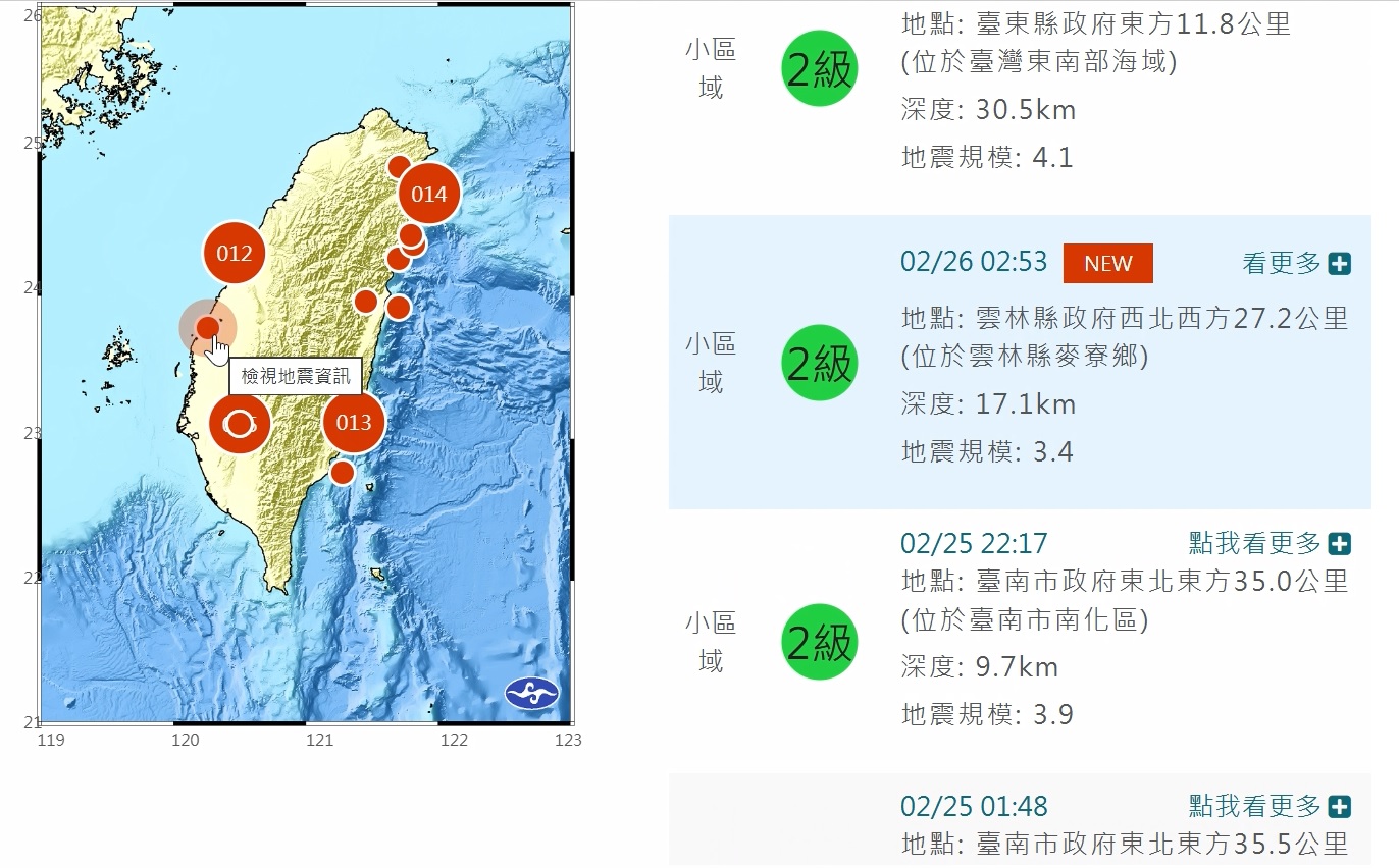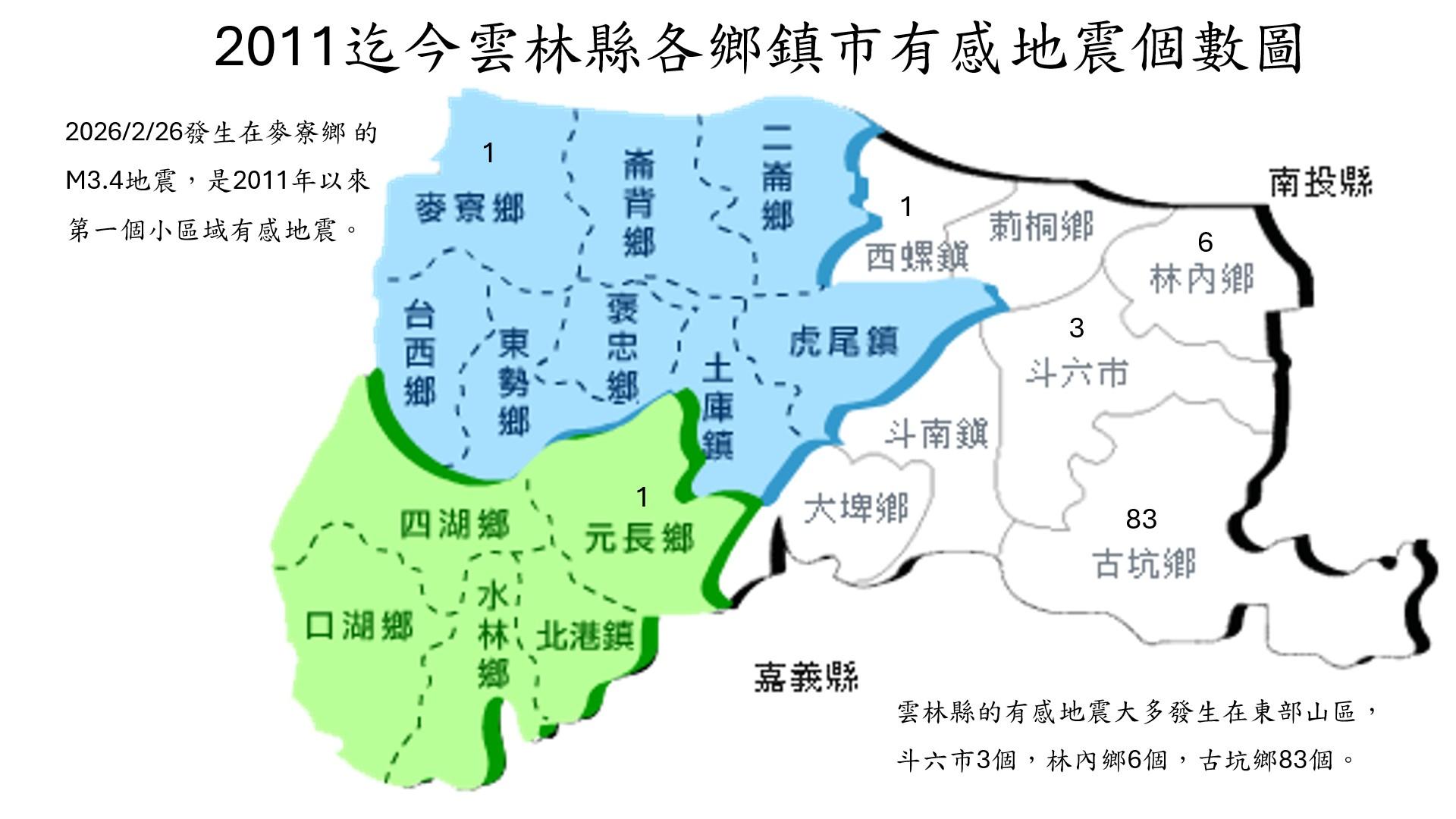 地處沿海地區,濁水溪出海口,一直是學術界認為無地震帶的雲林縣麥寮,2月26日凌晨2點53分卻發生一起規模3.4的小區域地震,相當的反常。