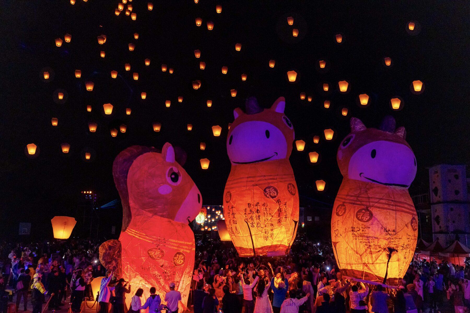 新北市平溪天燈節除了是臺灣文化的重要展現,更是新北市向國際展現多元創意與文化底蘊的盛典,今年迎來新春馬年,活動特別以福馬為主題打造了3盞福馬天燈,賦予「馬驫奔騰,邁向成功」的吉祥寓意,金色福馬代表財富、紅色福馬代表福氣,橘色福馬代表大吉大利,祝福大家新的一年財源滾滾、福氣滿滿、大吉大利。而本次活動打造了專屬馬年的「馬驫奔騰」光雕秀,透過投影營造出隨著福馬奔馳而來,福氣也隨之而來的祝福意象。隨著福馬與百盞天燈在眾人的驚嘆聲中冉冉升空,天燈的溫暖光輝與絢爛的光雕投影相互輝映,不僅閃耀了平溪山城的夜空,更將臺灣深厚的祈福文化與對未來的期盼,傳遞至全世界。