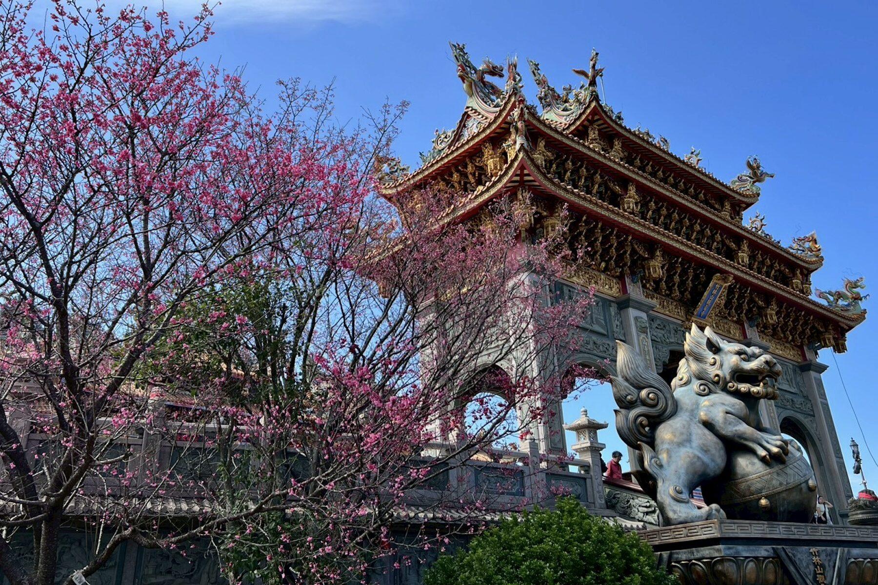 ▲林口竹林山寺不僅是當地著名的宗教聖地,更是春季不可錯過的賞櫻勝地。(圖/新北市景觀處 提供)