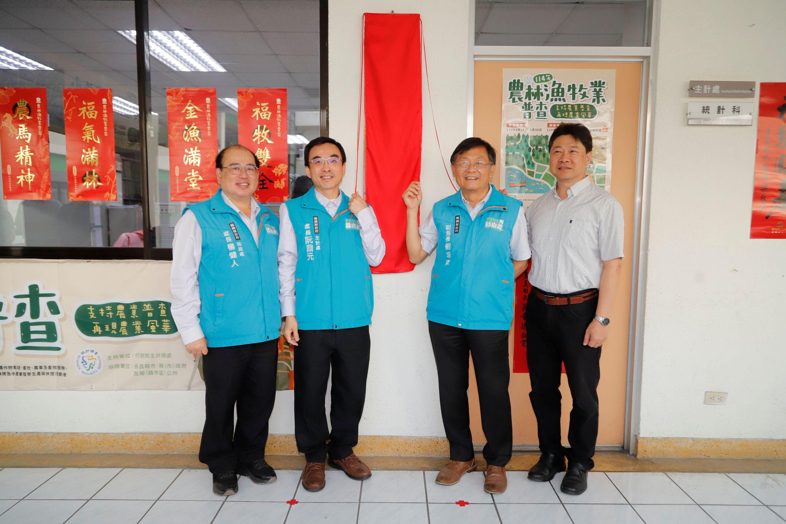 嘉義縣農林漁牧業普查處2日上午由副縣長劉培東、農業處長許彰敏、民政處長楊健人、主計處長阮鼎元等共同揭牌,本次普查填表對象約6萬6千家,包括經營農作物栽培、畜牧、農事及畜牧服務、林業、漁撈及水產養殖等生產與休閒活動的業者。