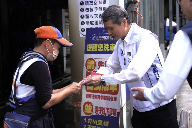 由於春節期間是返鄉與旅遊旺季,加油站承擔龐大的能源供應責任,陳瑞嘉先前往全國加油站土城交流道站,逐一發送福袋慰勞第一線員工,感謝大家春節期間仍犧牲休假服務民眾,負責比較遠加油島區的勞工,也趁空檔過來領取福袋,陳瑞嘉也特別躬身感謝。陳局長特別提到,他代表侯市長來感謝大家默默付出,陳局長也特別關心加油站勞工在低溫環境下的保暖與休息,並提醒值班經理要落實輪班間隔與工時管理,才能維護勞工身心健康。