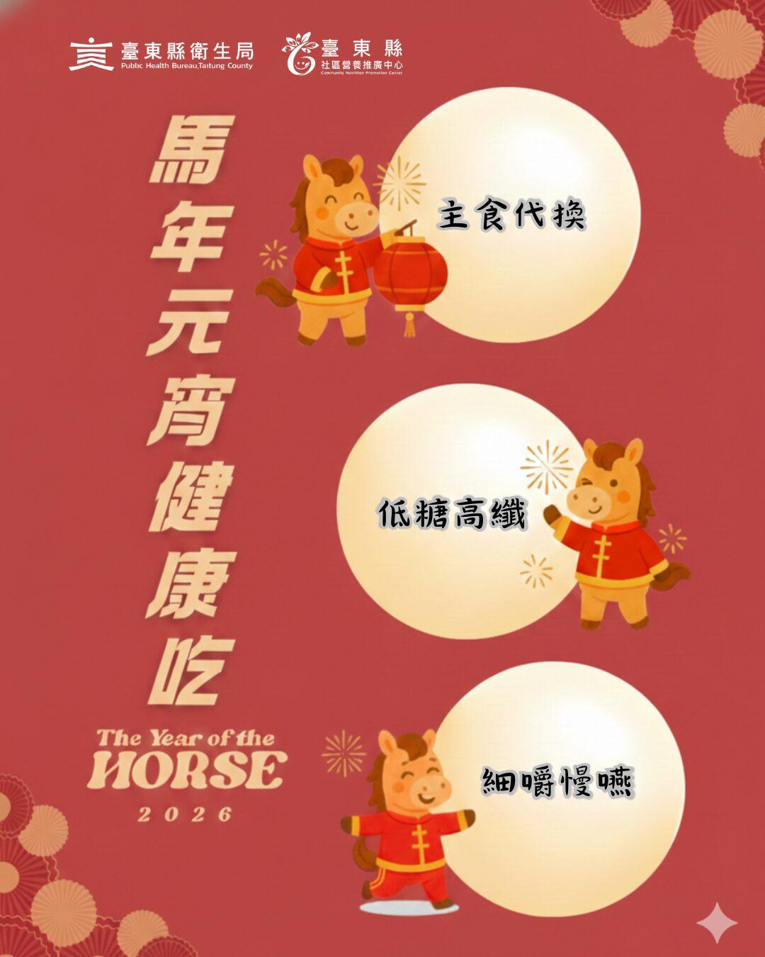 別讓元宵變「圓」腰! 臺東縣衛生局推「馬」上健康吃三招 吃得聰明無負擔