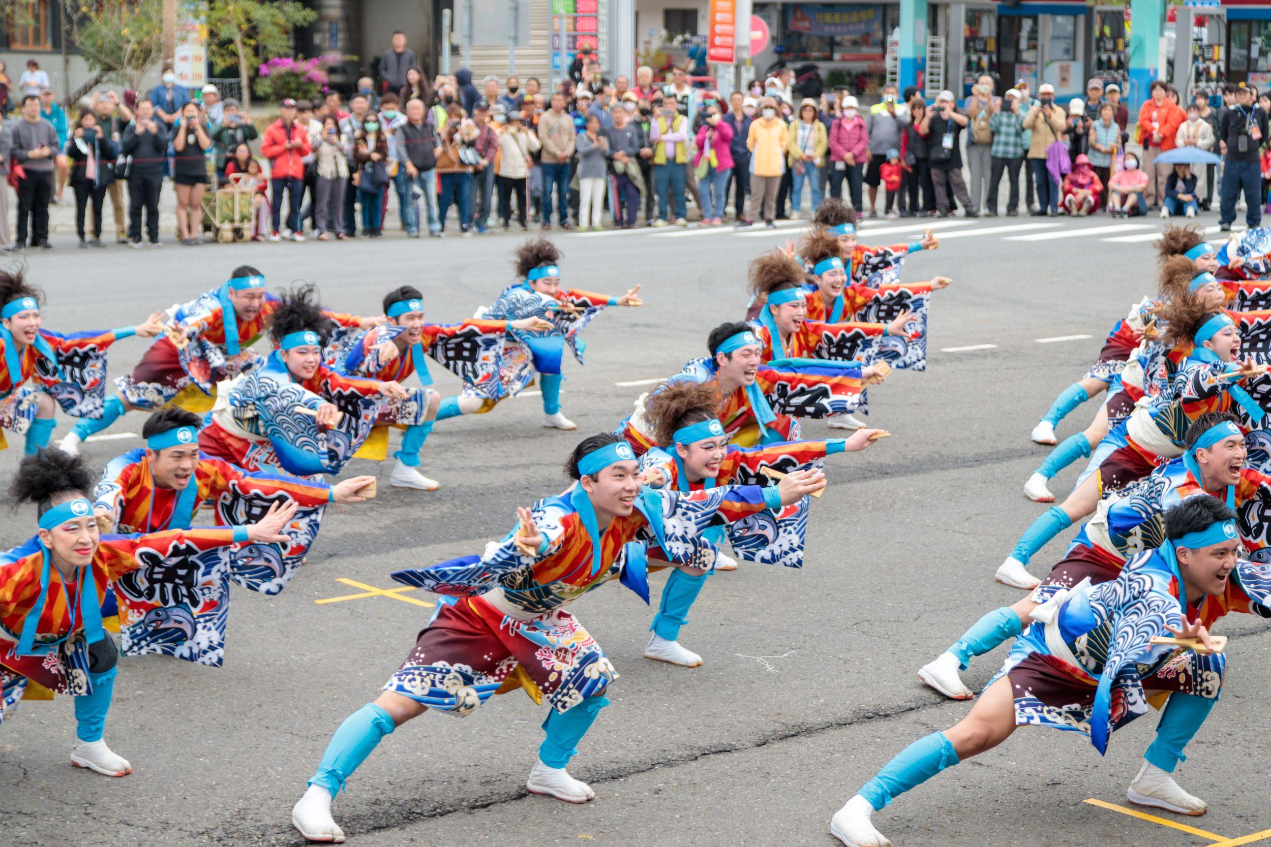 今年踩街活動規模空前,展現強大的國際友誼與多元文化魅力,包括與台灣交流密切來自日本北海道、名古屋、三重縣、高知縣共4支的Yosakoi 團隊,重現日本夜來祭慶典街頭的狂熱氛圍,力與美的舞蹈肢體,掀起觀眾如雷的掌聲。