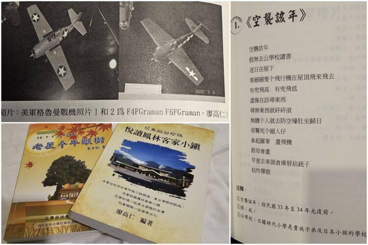 花蓮另一位著名的客家老詩人葉日松,在他的著作《老屋个牛眼樹》也有一篇《空襲該年》描述美軍空襲時,他没有上學躲空襲的親身感受。