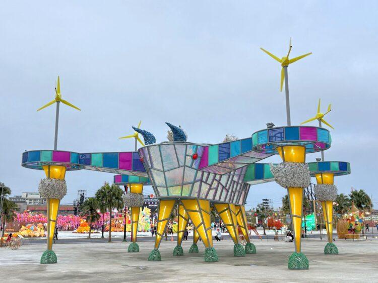 今年燈會「生命之源」燈區由全台首座以超大型農業無人機為意象打造的主燈「未來方舟」領軍,結合風力自發電與數位互動感測技術,外型充滿科技張力,也象徵嘉義農業正式邁向AI與智慧化的新時代,成為燈會中最受矚目的焦點之一。