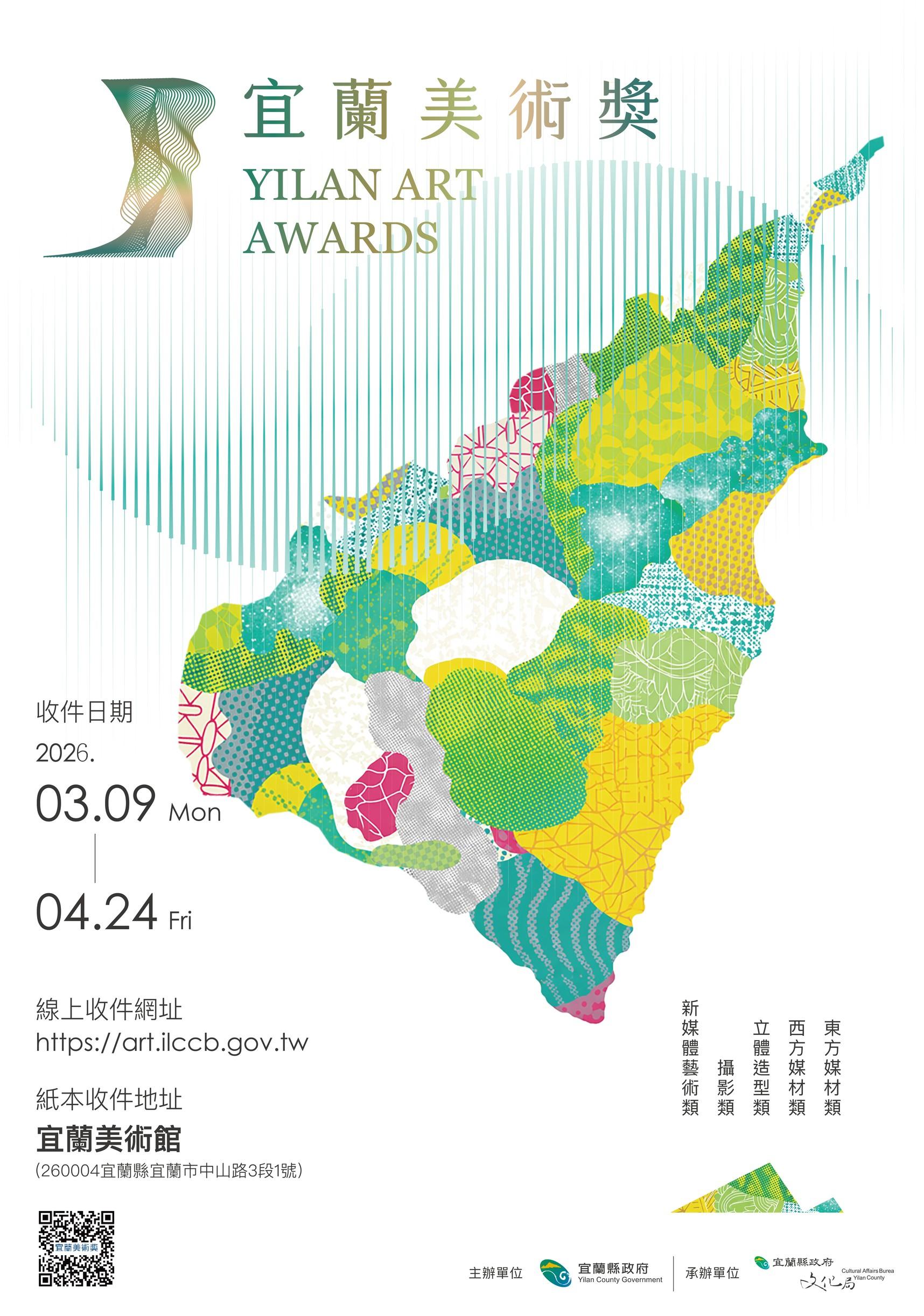 「2026宜蘭美術獎」即日起至4月24日正式展開全國初審徵件,「宜蘭美術獎」為宜蘭藝術界的重要藝文盛事,透過公開徵件匯聚多元創作能量,打造藝術交流與競技的重要舞臺,持續展現宜蘭深厚的藝術底蘊與創作實力,廣邀全國藝術創作者踴躍參與,共同角逐宜蘭年度藝術最高榮耀!