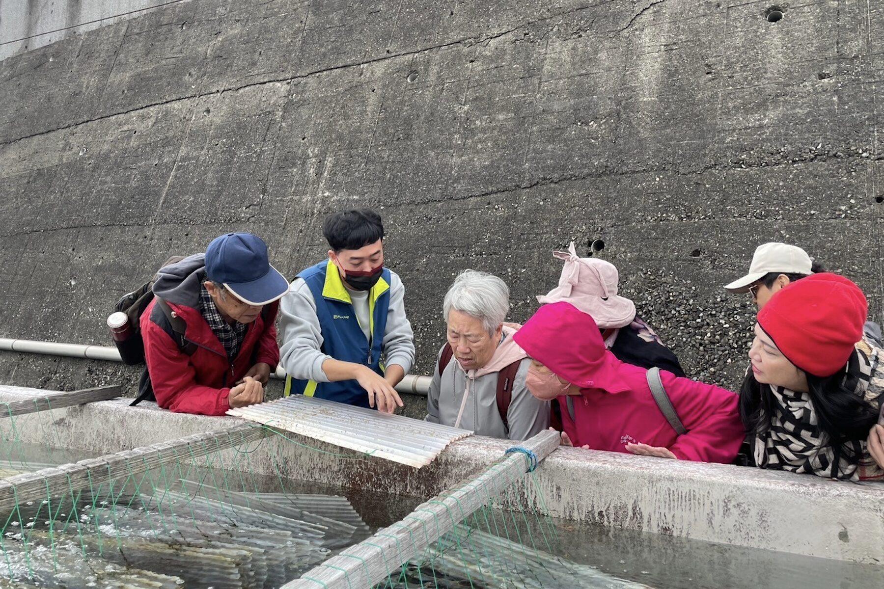 ▲民眾仔細觀察浪板上的九孔苗。(圖/新北市漁業處 提供)