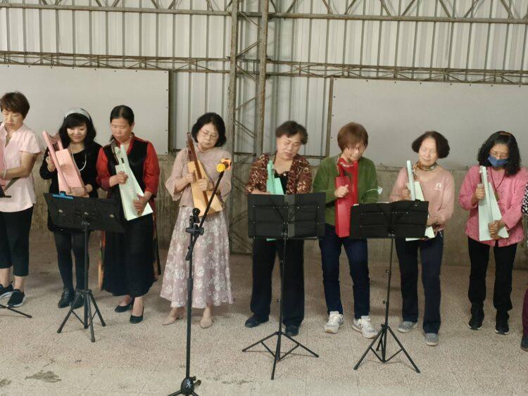 專攻豎琴的劉貞宜畢業於奧地利維也納大學音樂碩士,目前任教於南華大學民族音樂學系,於9年前在東區崇文里、南區樂齡學院、安平區國平里、文平里與YMCA教導陶笛、小豎琴與空靈鼓,14日的師生成果展約有120位學員參加,這些學員大都60歲以上外,其中年齡最大的是91歲的陳天賀。陳天賀是學陶笛,他說陶笛很適合上年紀的休閒與健康促進的活動,借此可練習肺活量、腹式呼吸、幫助排痰,兼具身心愉悅與輔助健康之效。