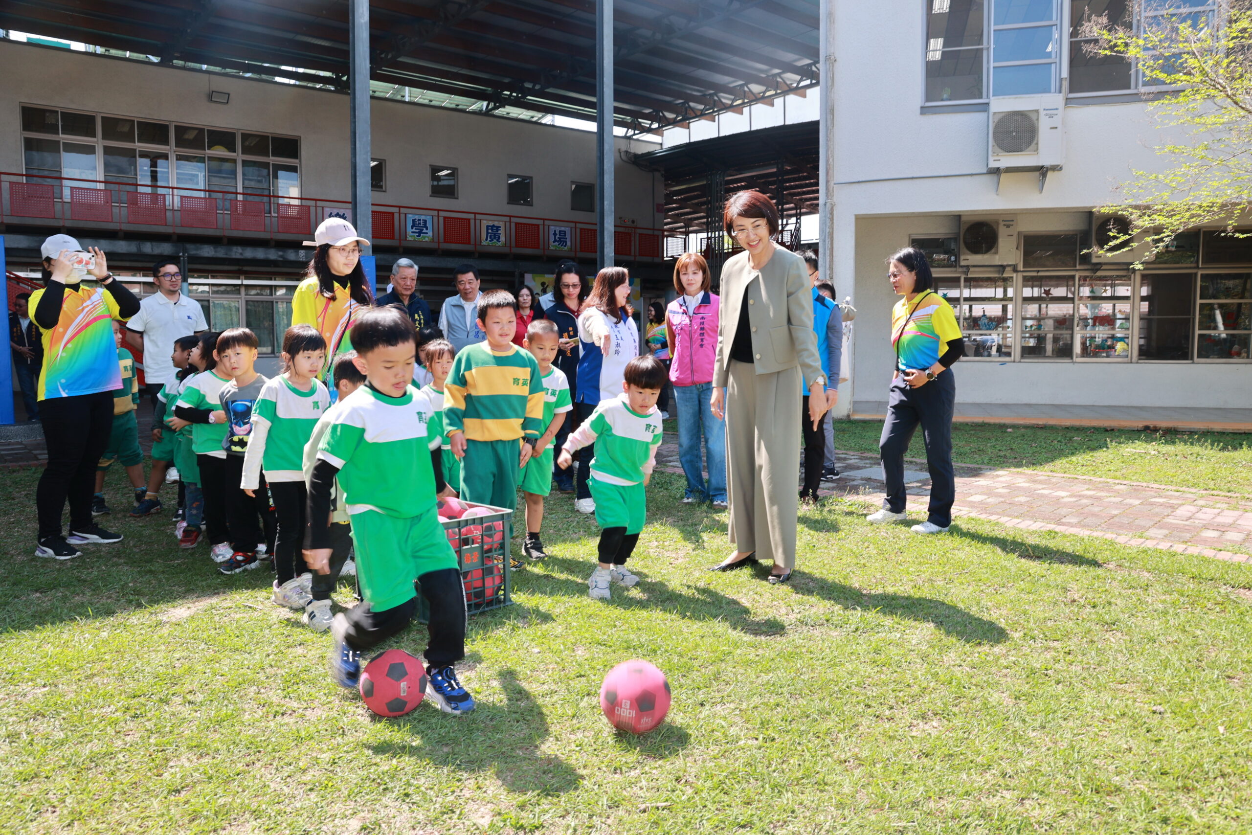 許縣長在育英國小宣布,學校行政組織將擴編。她表示,雖然少子化導致學生人數減少,但學校行政業務不減反增。因為隨著社會形態改變,特殊教育需求、輔導案件、校園霸凌投訴、危機處理等案件頻繁上升,許多教師兼任組長、主任等職務,處理非常繁重的各項行政工作。