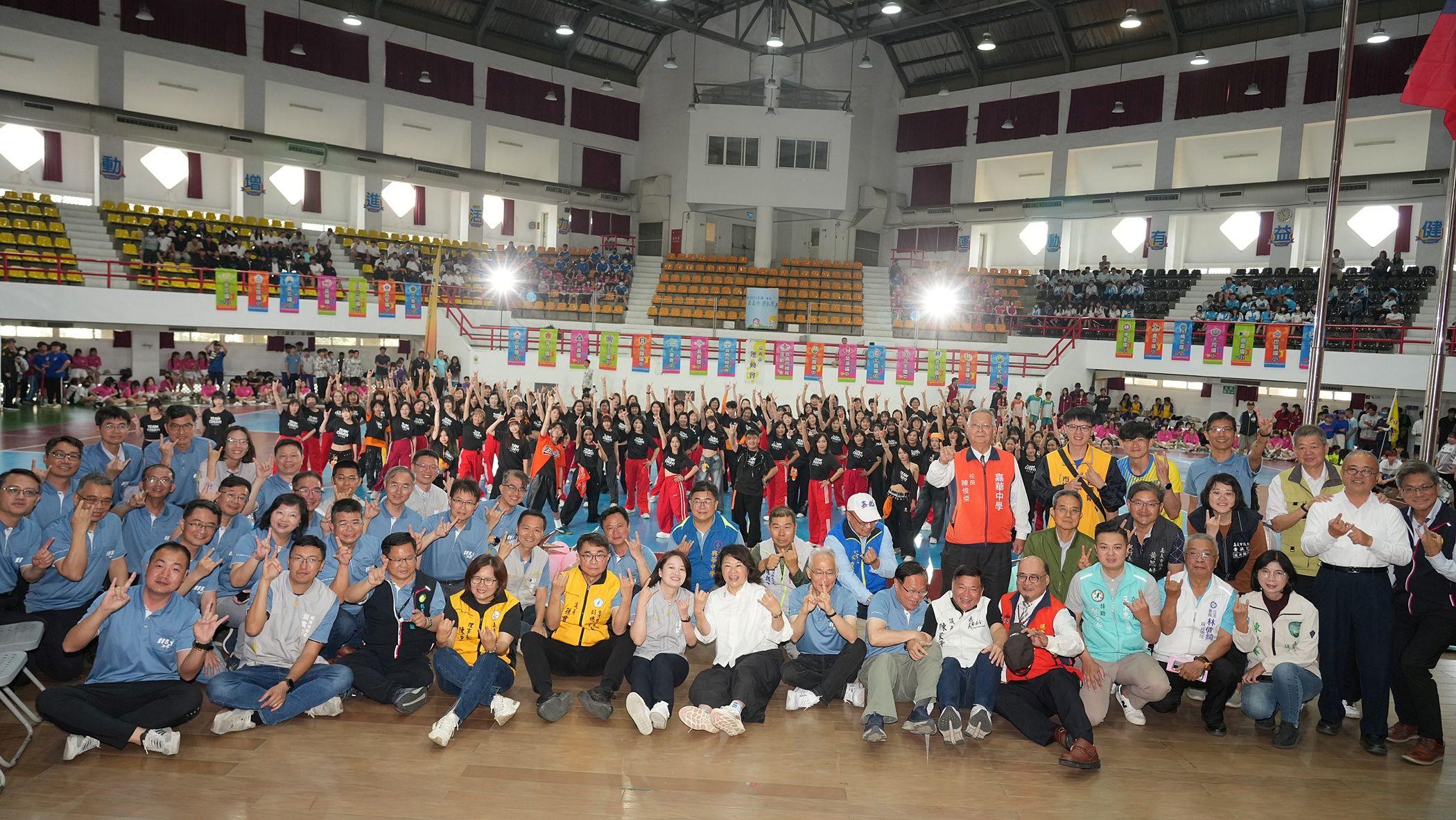 115年嘉義市運動會開幕典禮今(20)日在嘉義市東區體育館盛大舉行,分別由橫跨街舞、有氧舞蹈委員會及各高中社團而組成超過百人的舞團,以及東吳高職先後帶來精彩舞蹈表演為典禮揭開序幕。嘉義市長黃敏惠特別到場勉勵所有選手都能在比賽中激發潛能,在運動競技場上締造佳績,也期盼透過運動會促進校際交流,培養健康體魄與運動家精神,讓運動成為市民生活的一部分。