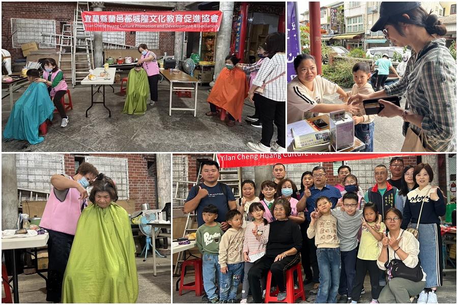 宜蘭縣蘭邑都城隍文化教育促進協會,3月22日上午協同台灣童心園社會與關懷協會,在宜蘭城隍廟舉辦義剪活動,由麗晶卡多剪髮團隊的理髮師響應善行,民眾只要現場捐2張1至3月的統一發票,就可免費剪頭髮。