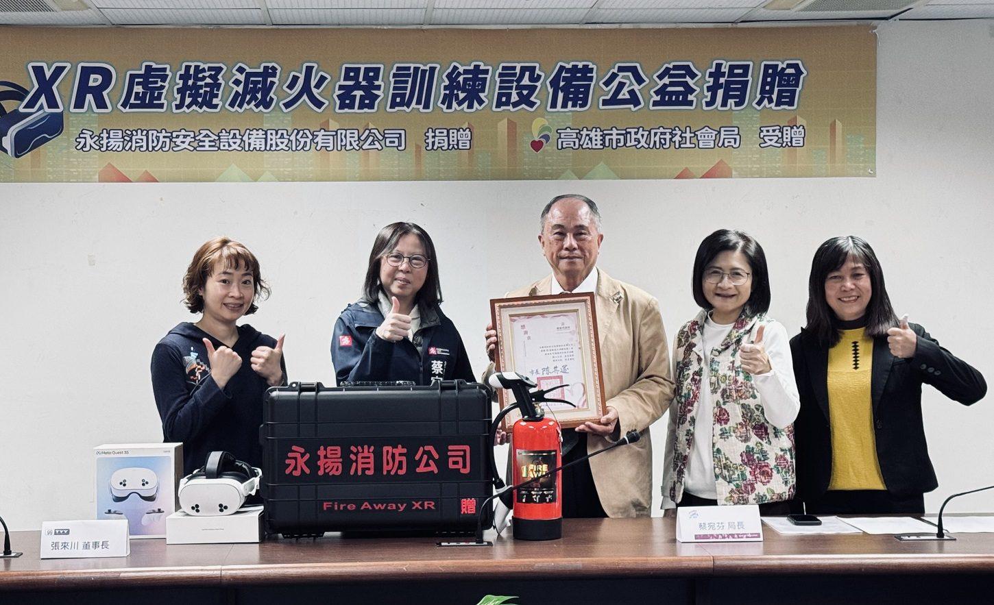 高雄市政府社會局表示,為強化社會福利機構整體防災韌性,特別引進「XR虛擬滅火器」設備,並感謝民間企業永揚消防設備公司以公益形式捐贈,促成這項創新應用落地。該設備突破傳統場地與安全限制,透過虛擬實境技術重現火場濃煙、火勢蔓延等情境,讓使用者在安全環境中熟悉滅火器操作,達到「訓練即實戰」的效果。