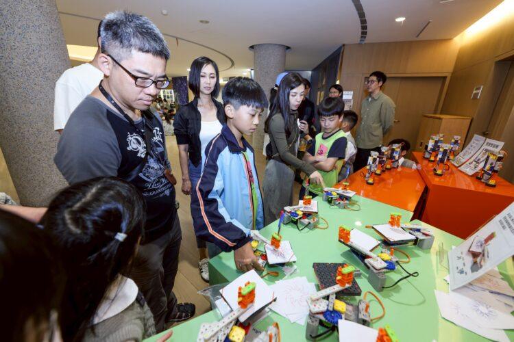 進到圖書館一樓,映入眼簾的是復刻梵谷亞爾的卧室場景,另一側是星空下的咖啡館,來賓可在此小酌咖啡、點心、拍照打卡,亦可模仿梵谷點描技法,彩繪屬於自己的星夜作品;此區另有畫圖機器人、視覺暫留機、程式動畫、程式遊戲之學生作品供來賓體驗。