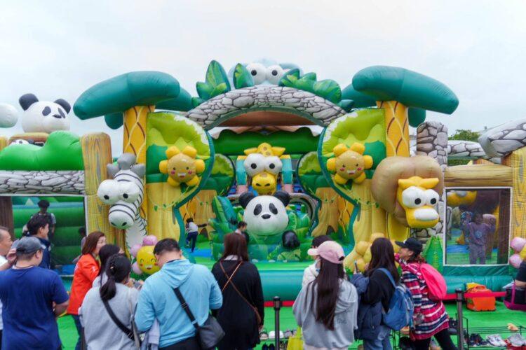 孩子們在「動物派對」與「海洋世界」主題式巨型氣墊童趣樂園盡情嬉戲;童話故事遊戲區的小火車、旋轉茶會與旋轉木馬都吸引了排隊人潮;專為4歲以下幼童打造的分齡親子遊戲區中,小朋友盡情享受溜滑梯、積木,在大球池裡玩到捨不得離開;親子手作區寓教於樂,結合環保、藝術、食農教育,讓孩子們物質、心靈滿載而歸。此外,活動自然少不了逛市集的樂趣,現場有50攤以上的市集、公益宣導及娛樂攤位,讓親子可以一起悠閒逛街、滿足味蕾。走至可愛動物互動體驗區,孩子們近距離觀察與認識笑笑羊、象龜、水豚等動物,在互動過程中學習尊重生命與關懷自然。