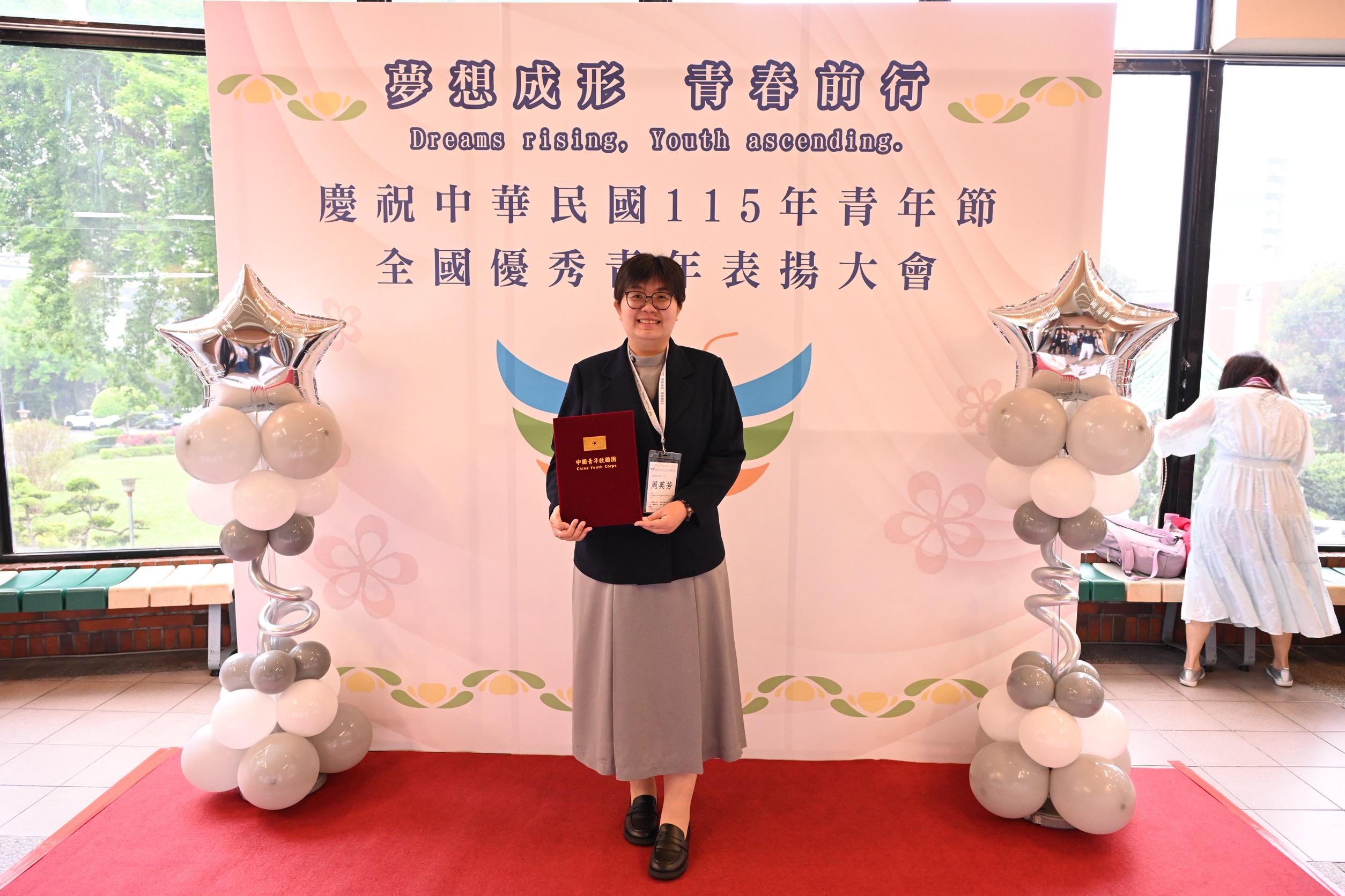 她積極為社會培育更具韌性與溫度的醫療體系,實踐青年對社會的責任與影響力的行動,讓她獲選為2026年花蓮縣優秀青年,更成為唯一獲選代表花蓮獲選為全國優秀青年楷模。她強調,自己是代表所有在東部努力的第一線醫護人員領獎,身為青年世代的一員,她深信真正的優秀不在於個人成就,而在於是否能在社會需要時挺身而出、在制度中留下改變。