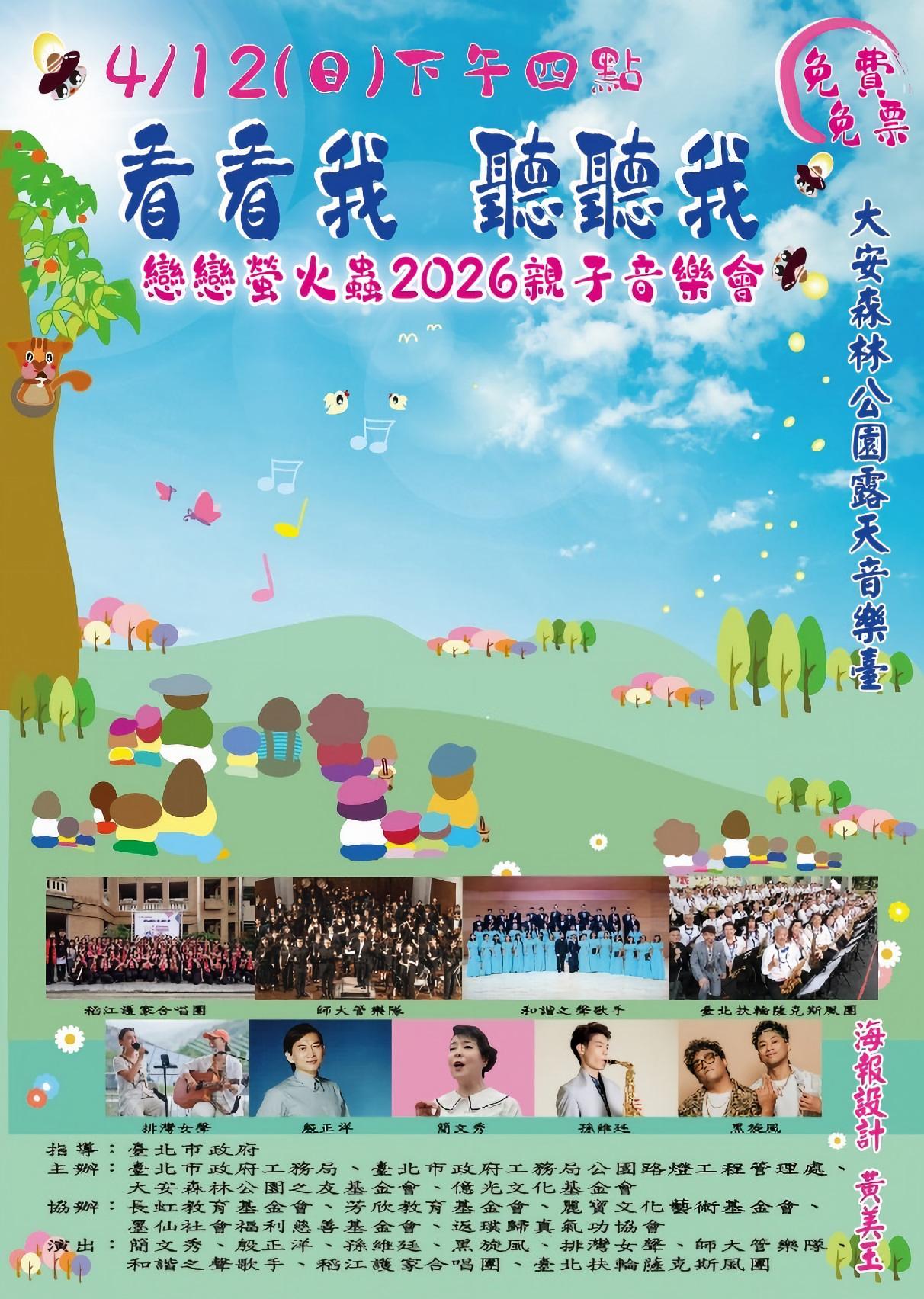 4/12大安森林公園「看看我 聽聽我」親子音樂會 簡文秀揪您來唱歌看火金姑!